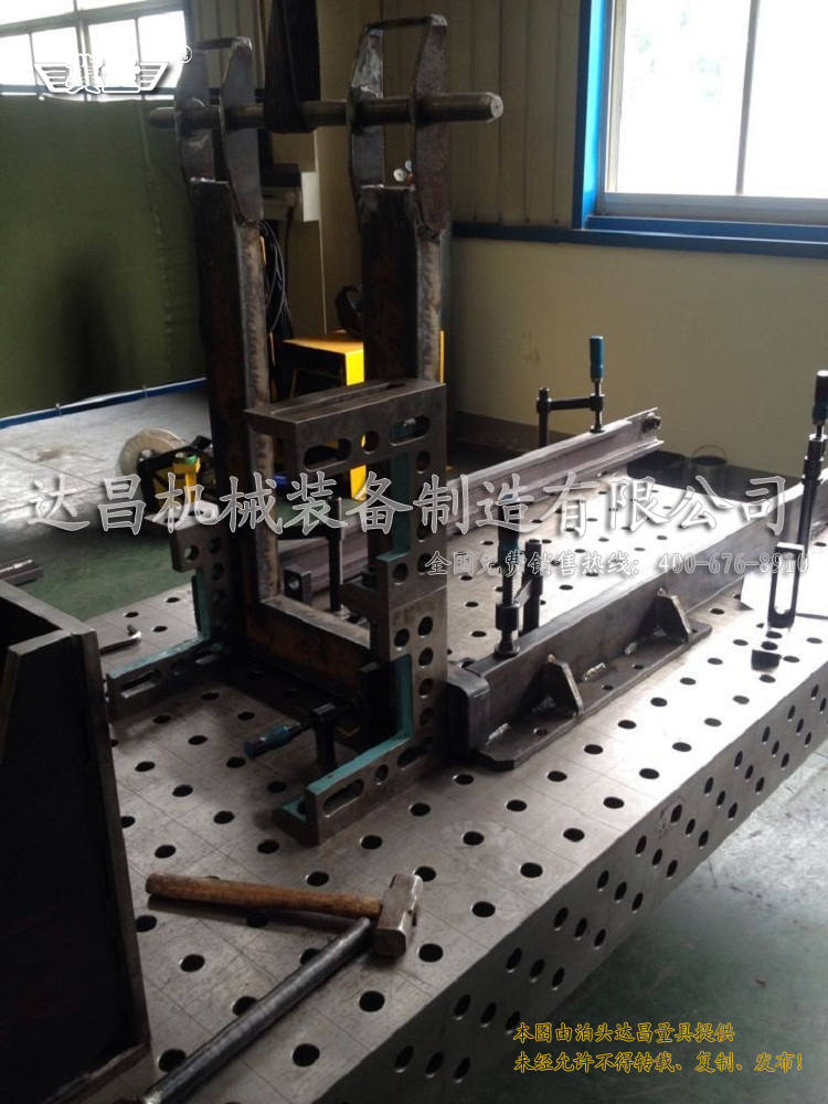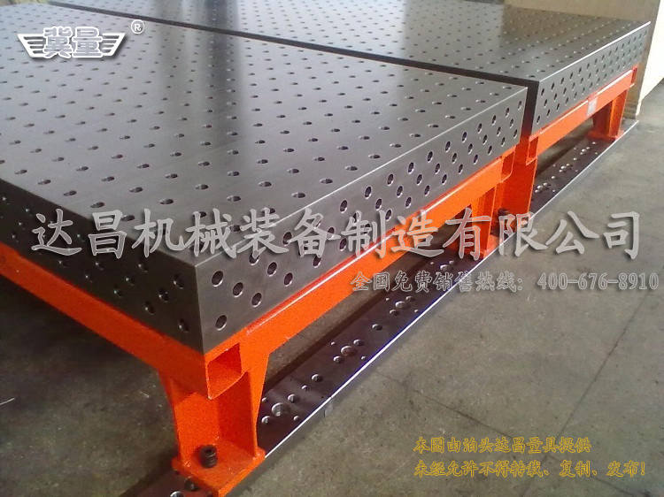 三維柔性焊接基礎平臺說明:三維柔性焊接工作平臺采用帶孔格板形式、高精度、標準化、模塊化。在高精度的臺面的上表面和4個側面,每隔100mm均布φ28mm的圓孔(D28系列),或每隔50mm均布φ16mm的圓孔(D16系列),并以同樣的間隔劃有尺寸線,臺面邊緣可帶毫米刻度線,臺面上的圓孔可用于拼接各種功能的定位模塊和夾具。